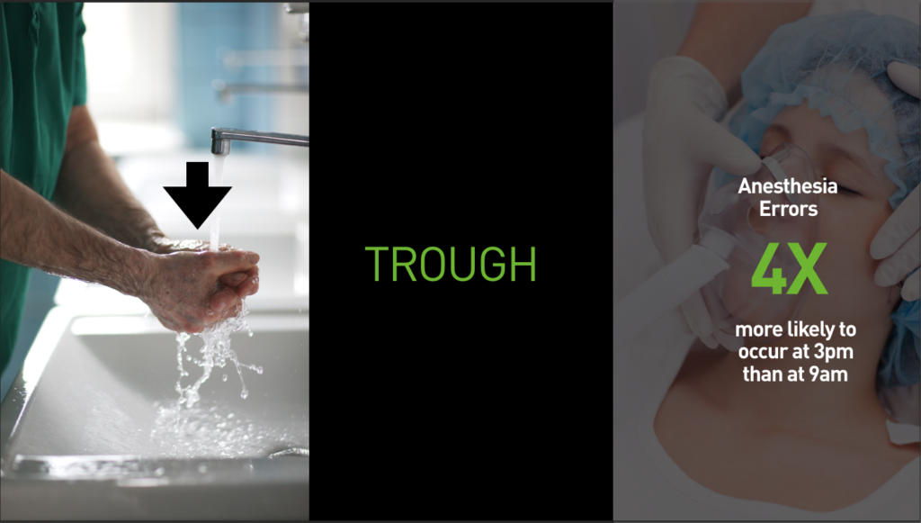 The key learning from chronobiology is that our emotional state goes through a cycle throughout that day and this has implication on the type of tasks we are optimized to do during certain parts of the day. When we are at our peak we are best geared to work on tasks that require focus and sustained attention. This is the time when we should aim to make decisions that bend under the force of logic. For example, if you need to do some strategic thinking this is the time to get analytical and immerse in data, as this is the time when we are most vigilant. This peak lasts for about seven hours after we wake up. Then we hit a trough. Approximately this is about 2pm for most people.